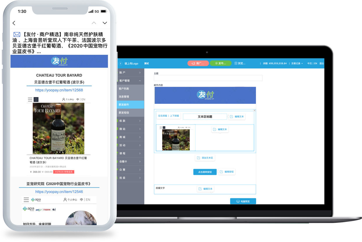 发布活动、售卖商品、管理会员